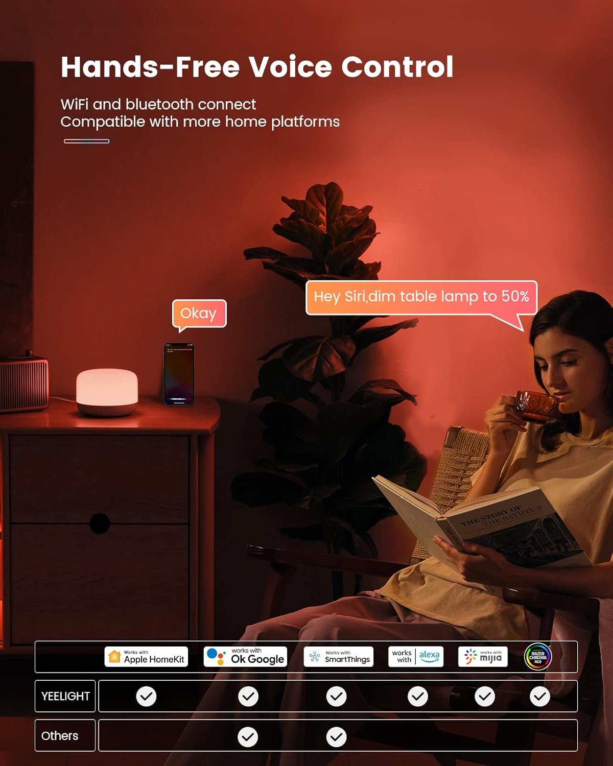 • Voice & App Control: YEELIGHT bedside table lamp works well with HomeKit,Alexa and Google Assistant,the smart bedside lamp has a faster and more stable connection via WiFi and Bluetooth.Feel free to power your smart lamp on/off, adjust brightness or change colors with simple voice or YEELIGHT home app.No worries about can’t find the light switch when you walk in a dark room.(Only support 2.4GHz WiFi)