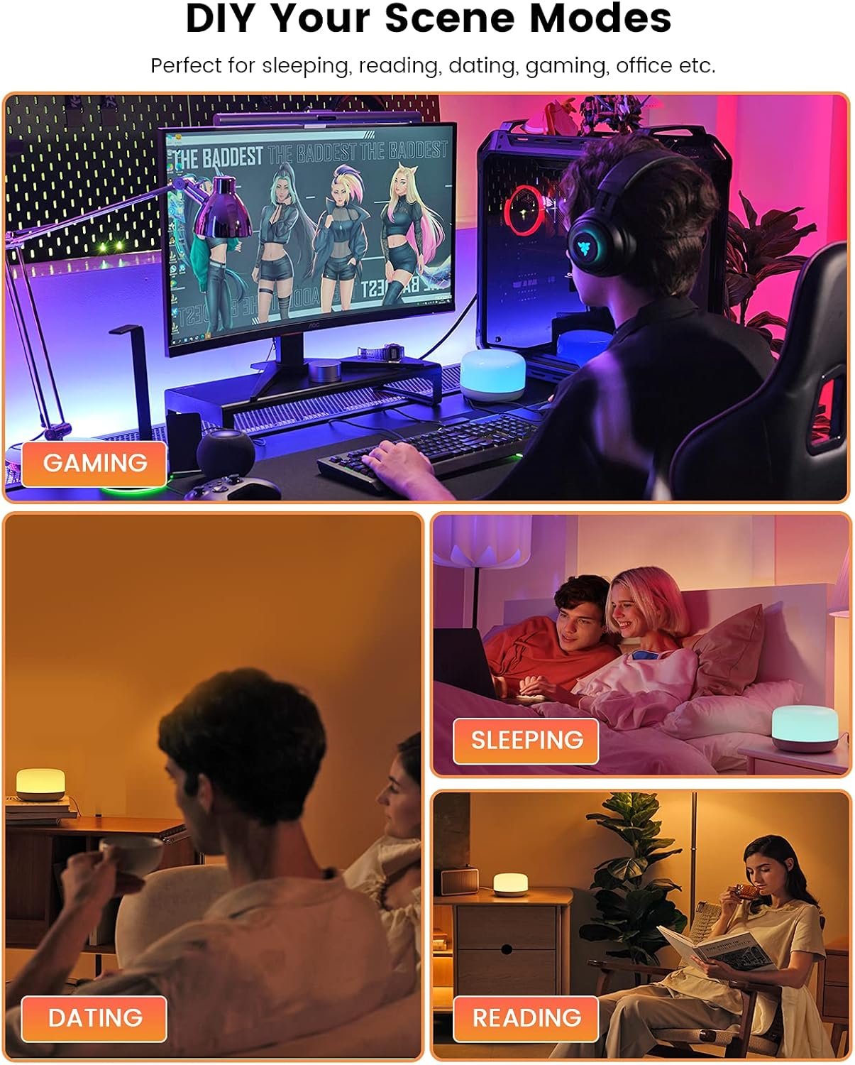 • All-day Timer and Schedule:Set the bedroom lamp to create a convenient all-day schedule for automatic on/off, adjustment brightness, and color changes. Wake up and fall asleep with your favorite light every day. Now incorporate your nightstand lamp into your daily life!